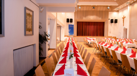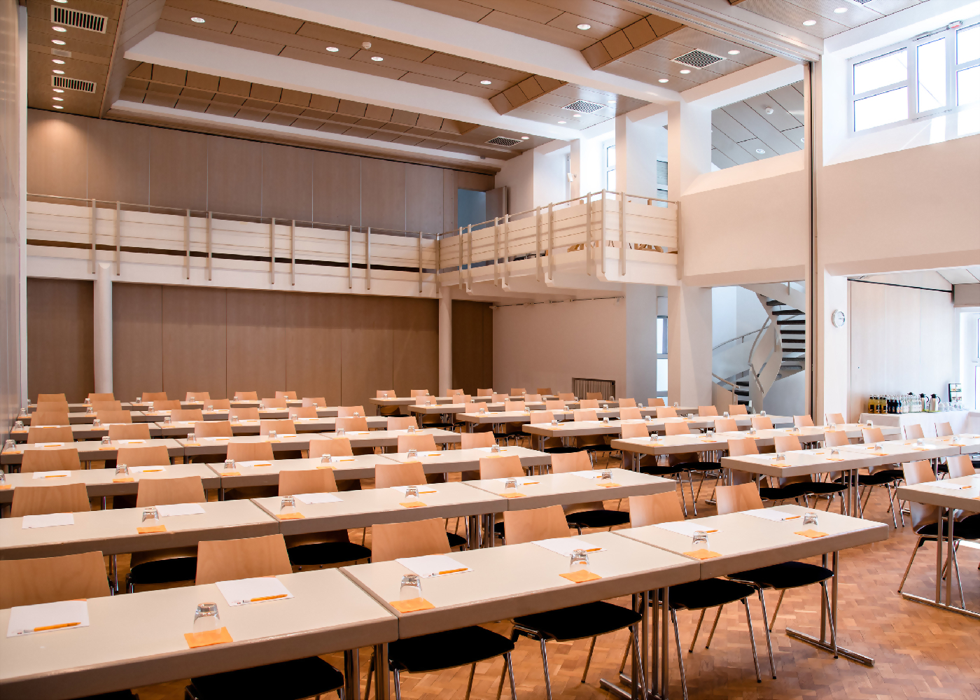 In unserem lichtdurchfluteten Saal mit moderner Tagungstechnik und Bühne finden Ihre Tagungen und Konferenzen den perfekten Rahmen.