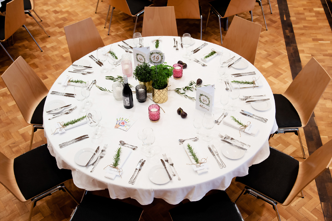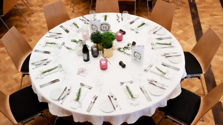 Mit Platz für bis zu 300 Personen in der Kombination aus kleinem und großem Saal, verwirklichen wir Ihre individuellen Wünsche und schaffen ein passendes Ambiente für Ihr Event.