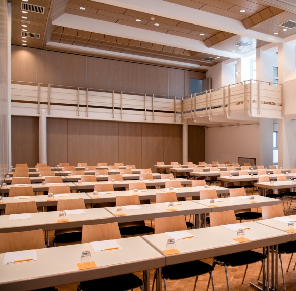 Der Raum Empore ist sowohl Erweiterung unseres Kolpingsaales als auch eigenständiger, lichtdurchfluteter Tagungsraum mit eigenem oberen Foyer für Kaffeepausen.