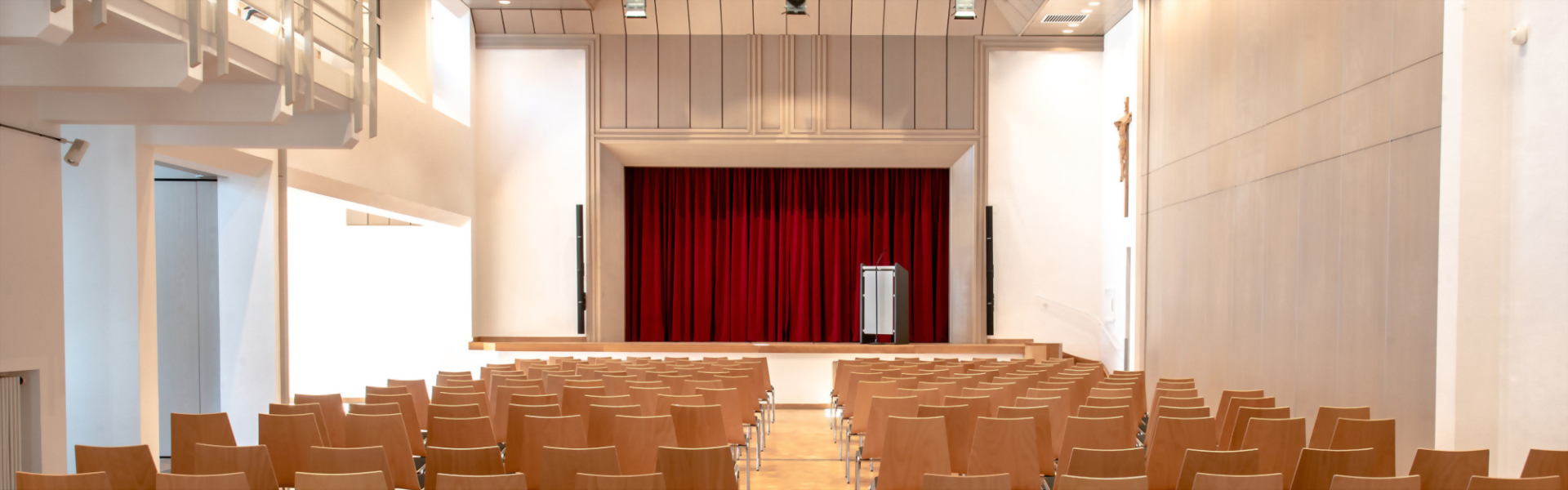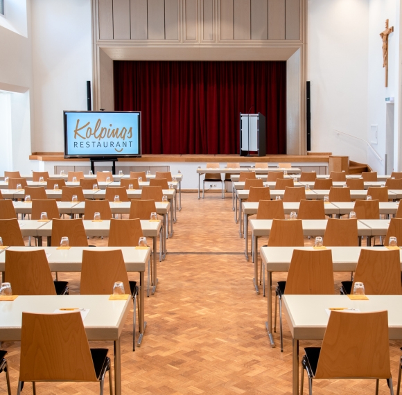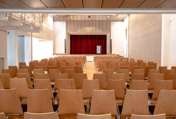 Der Kolpingsaal ist ein Konferenzraum, sowie ein Ort für Ihre Feierlichlichkeiten mit einem großen Foyer für Empfänge und Buffets. Der Raum ist sowohl lichtdurchflutet, als auch barrierefrei.