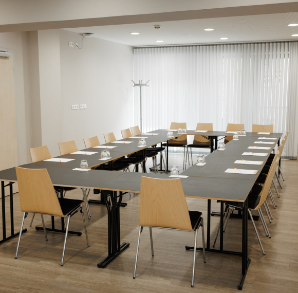Er eignet sich gut für Besprechungen und Tagungen mit kleinerer Personenanzahl.